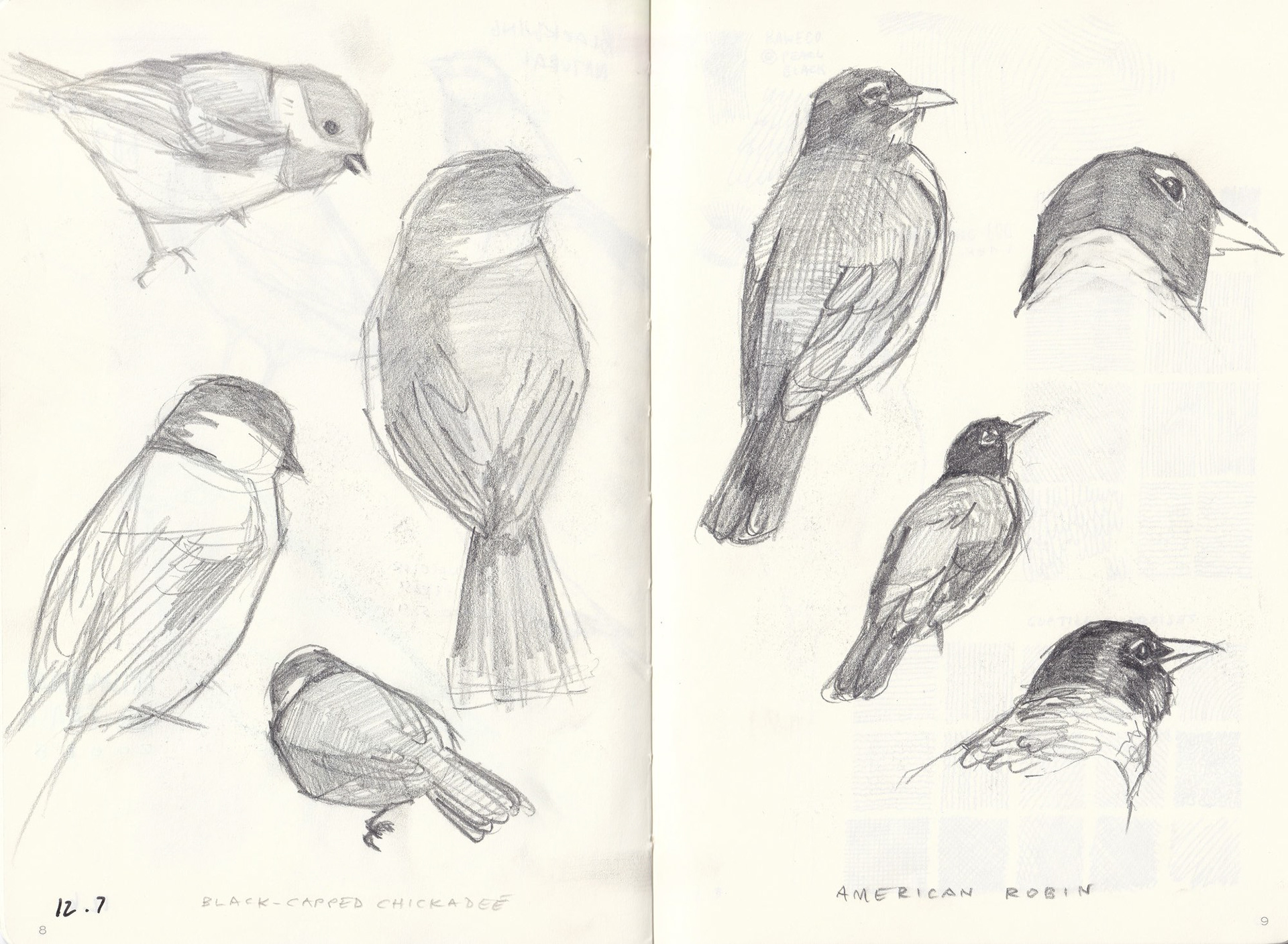 Bird studies in pencil