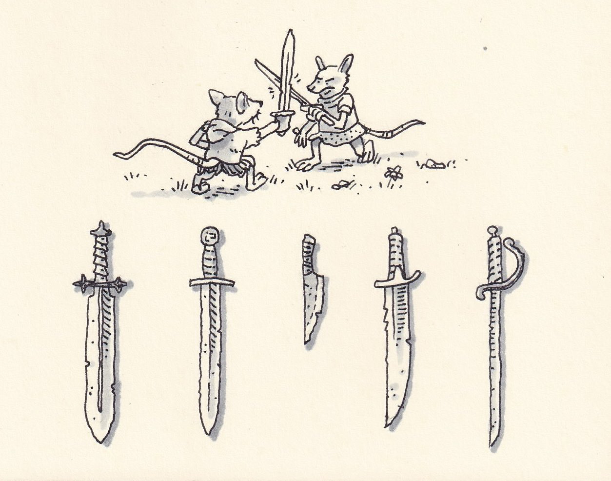 Big pages. Little mice with swords.