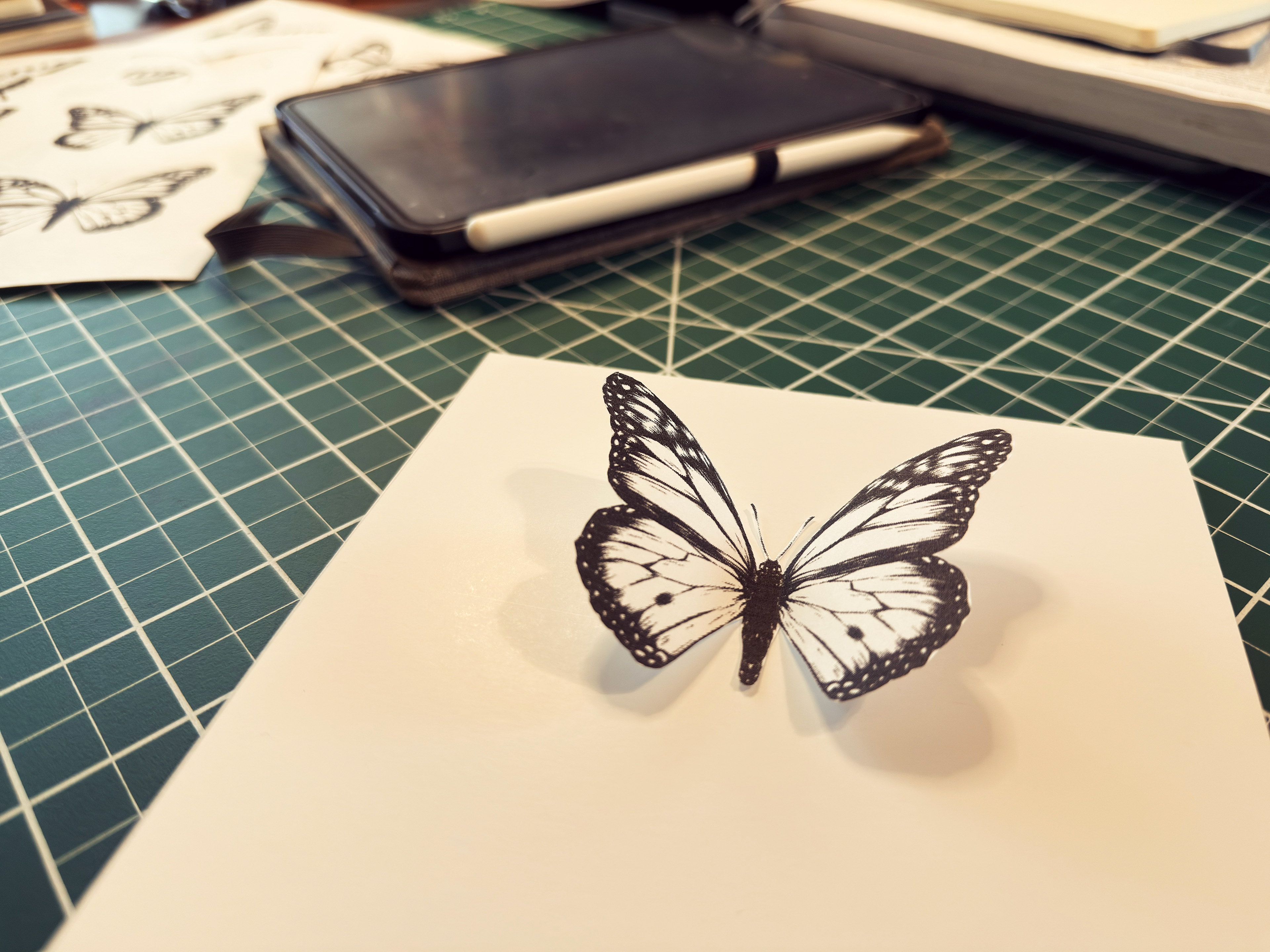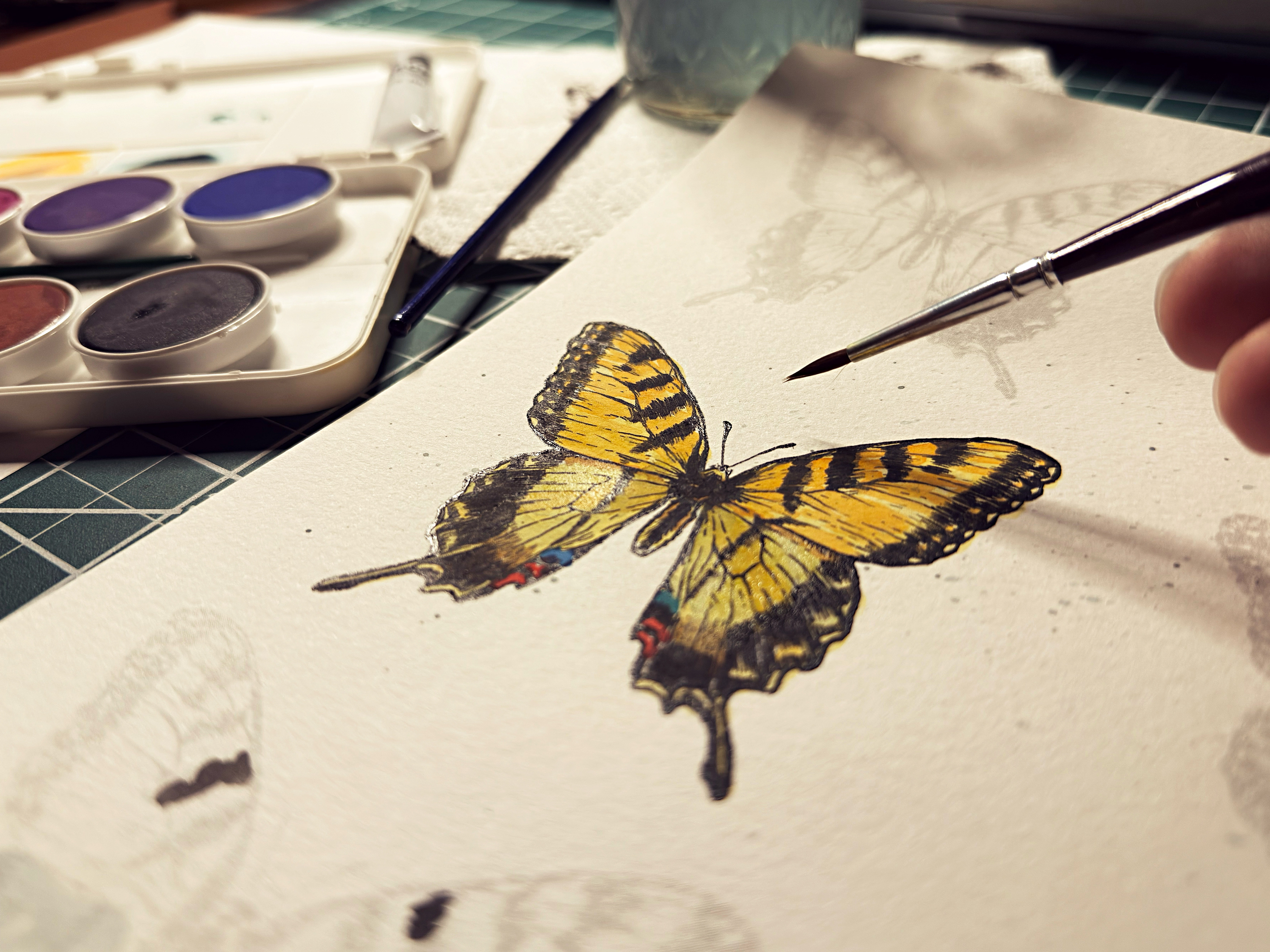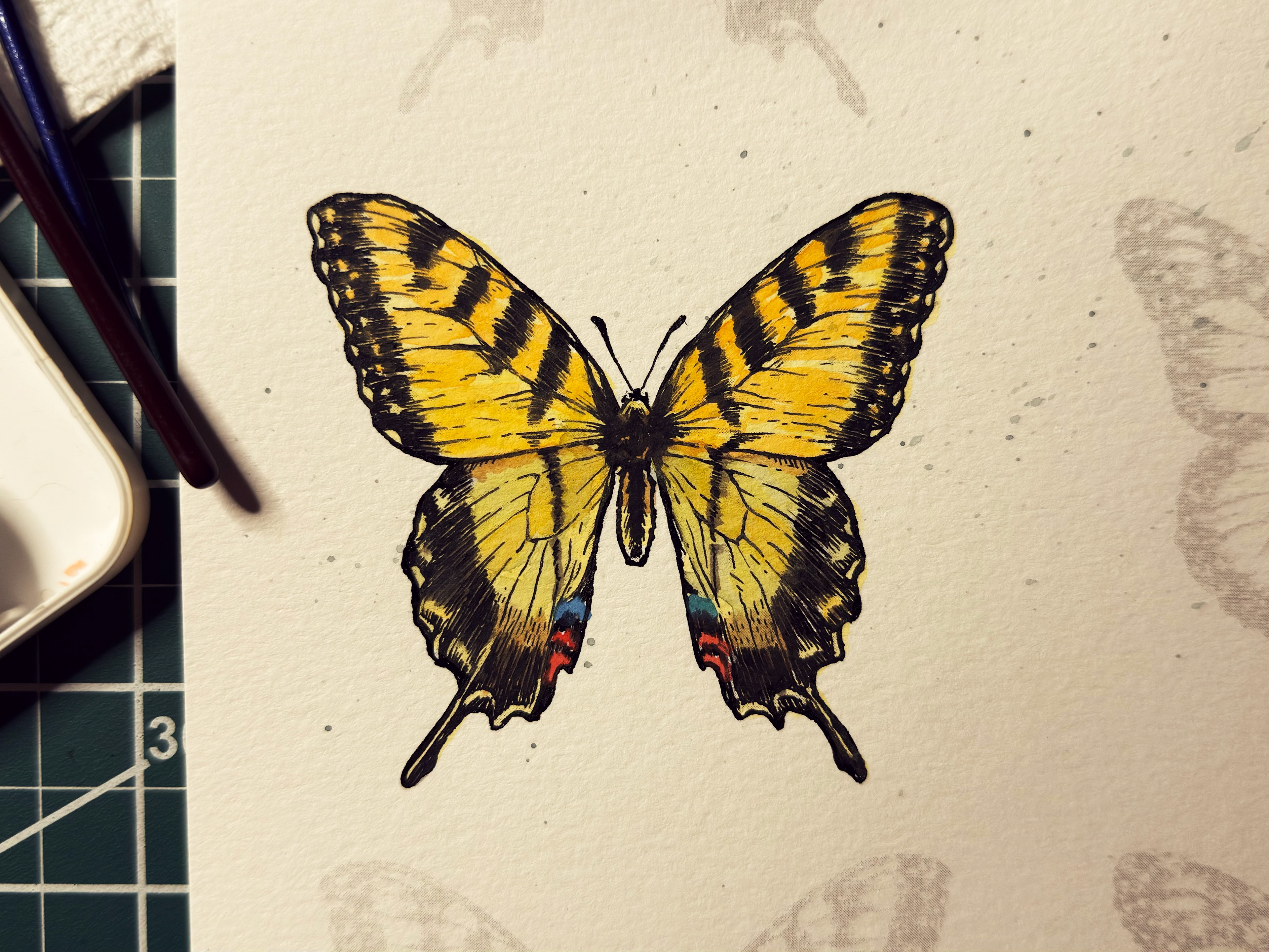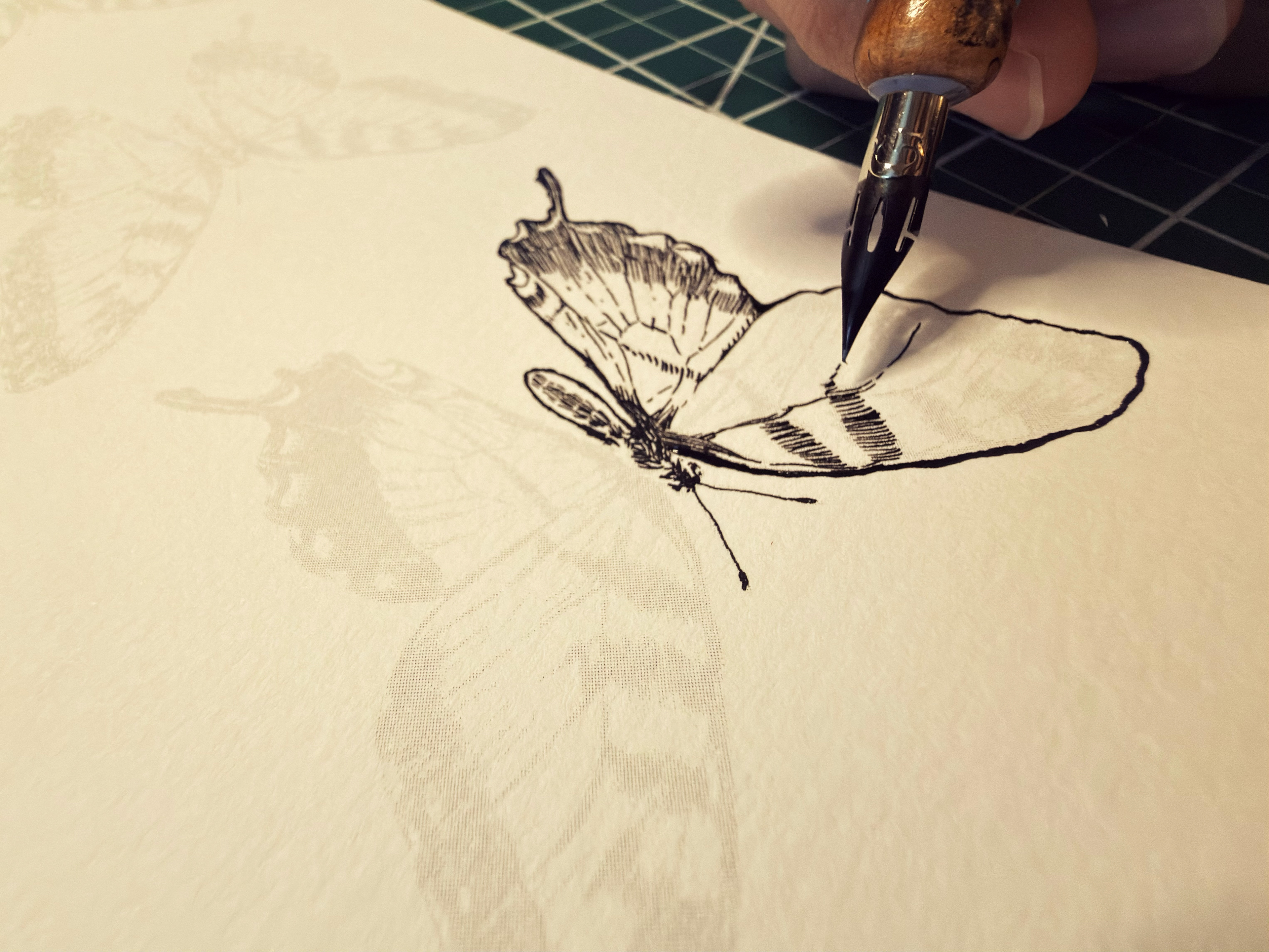 Dip pen and watercolor butterflies mounted in custom shadowboxes